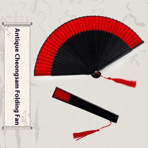 Abanico plegable de bambú de estilo chino para mujer para baile Hanfu Cheongsam Performance Easy Open