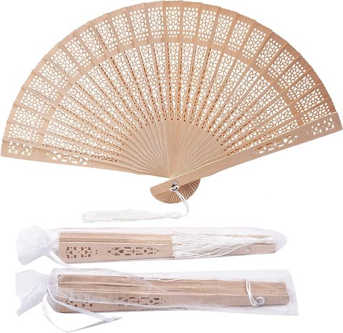 Exquisite 20.5cm Wooden Folding Wedding Fan with Moon Star Design Folk Art Style Bamboo Craft for Business Gifts Party Favors