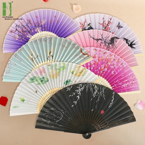 Hanfu sườn xám biểu diễn dễ dàng mở quạt gấp tre kiểu Trung Quốc cho khiêu vũ